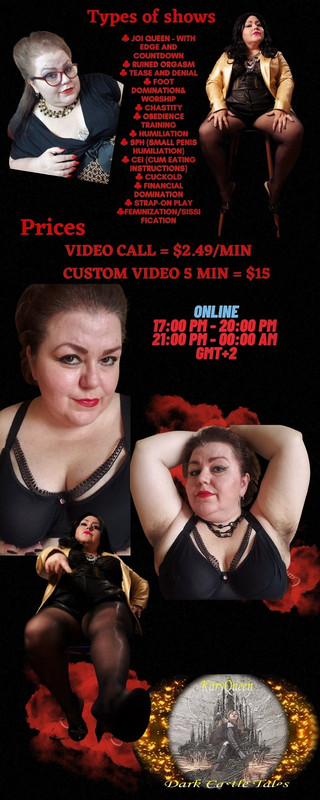 Vedi più modelli dai tag di QueenKary: curvy / dirty / mature / hairy / findom / squirt / fantasy / cei / sissy / mistress / sph / boots / leather / watersports / humiliation / Assworship / strapon / blackmail / cuckhold / hairygoddess / fastresponse