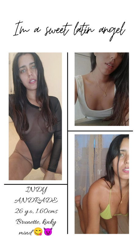 Hey!, i'm Indy, I am a sweet, friendly, Latin angel, 1.60 cm slim, brunette (hope u like brunettes pussys too ;) ),