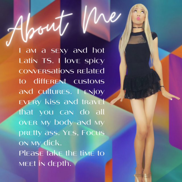 Меня зовут Кэнди Наташа, я транссексуальная девушка, которая стремится доставить вас к звездам со всем удовольствием, которое мы можем испытать вместе. Я из Венесуэлы, но живу в Колумбии, мне 29 лет, и я люблю спокойные планы и хобби, такие как кино, походы в ресторан, прогулки, я люблю аниме и фэнтези-сериалы.
