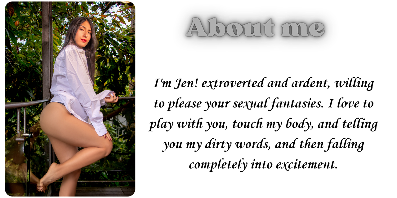 Olá, sou a Jenn. Uma garota descontraída, divertida, sexy e muito safada. Meu inglês é intermediário, mas entendo quase tudo e adoro me soltar e usar minha imaginação. Admiro homens que ouvem e gostam de ver o que faço em particular. Sou aventureira, de mente aberta e pronta para te agradar. Adoro explorar novas experiências, curtir o momento com você e realizar todas as suas fantasias.